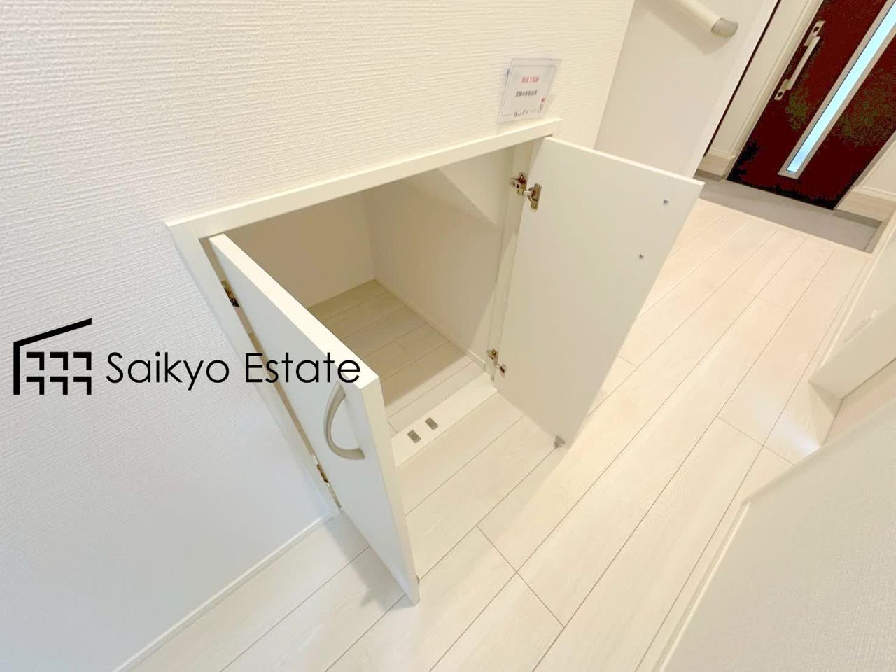 1階ホール部分には階段下を利用した収納スペースがございます。日用品や使用頻度の低い物などの収納や備蓄庫としても使える便利な空間です。