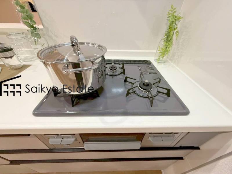 「3口ガスコンロシステム」はたくさんの料理が同時に作れて便利な上、凹凸が少ないフラットトップなのでお掃除も楽々です。