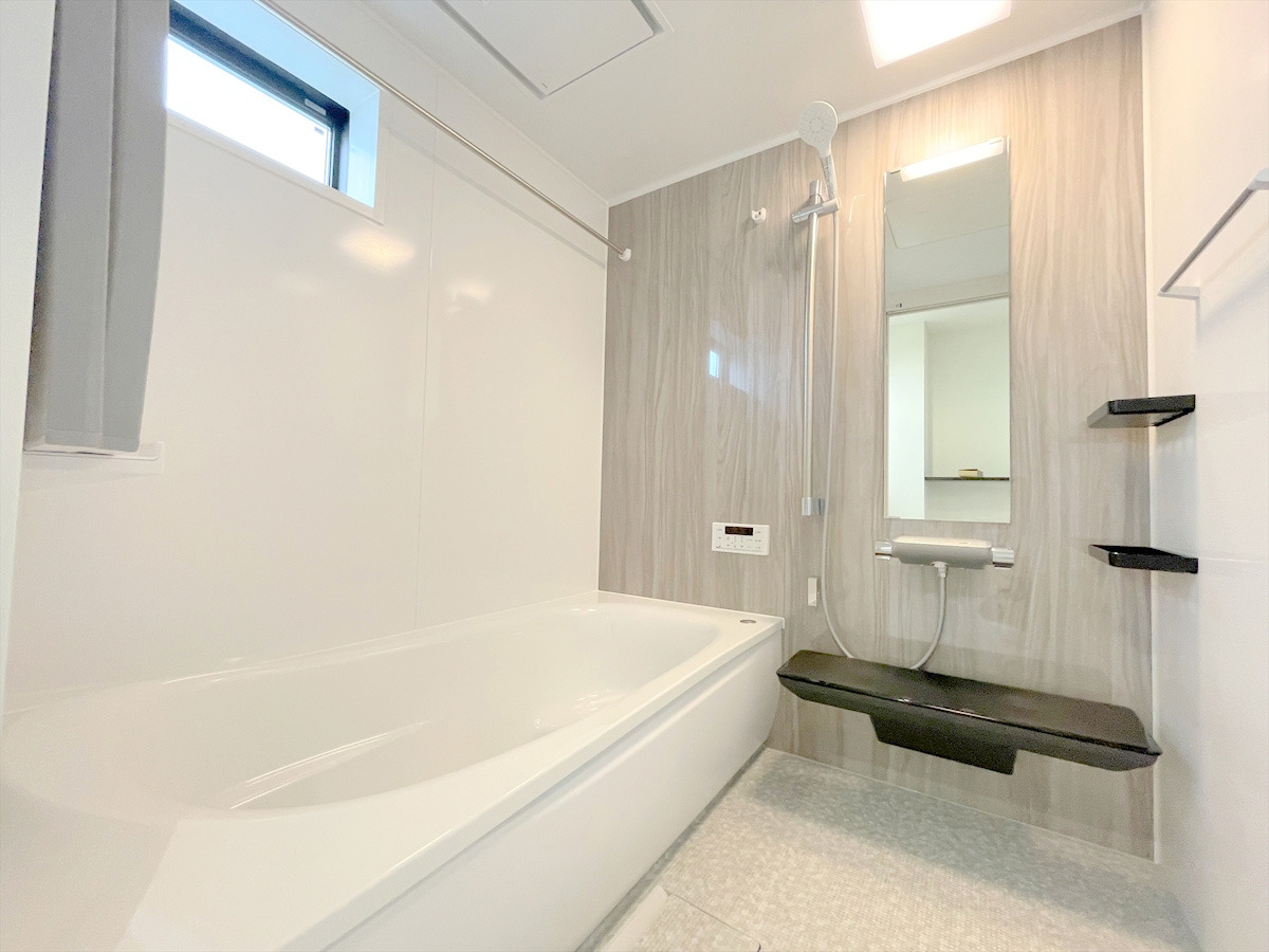 ゆったりと足を伸ばせる一坪タイプの浴室です。浴室換気乾燥機付きですので、カビの発生も抑制出来ます。 ■府中市是政6 新築一戸建て■