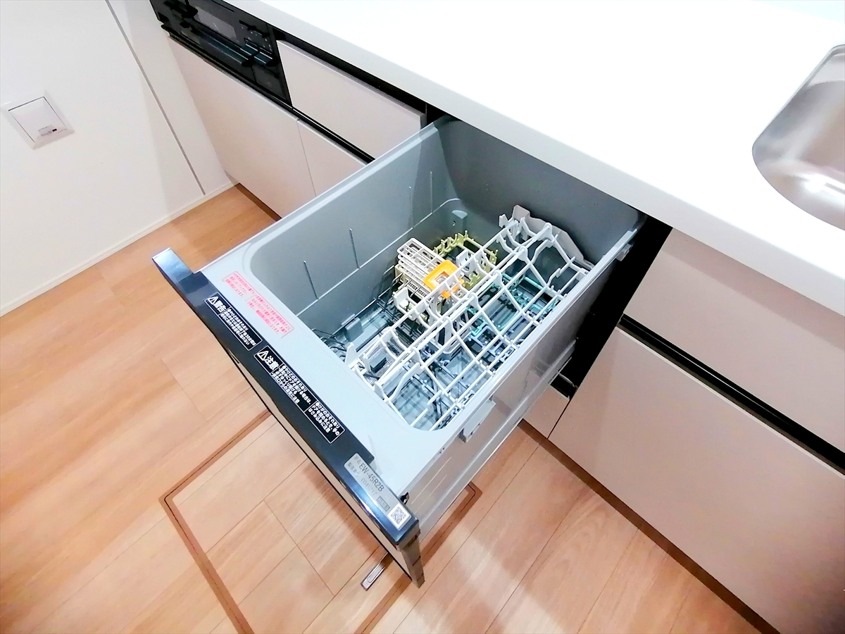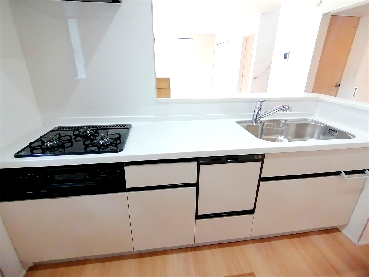 キッチンには食器洗い乾燥機や蛇口一体型浄水器を搭載。見た目も美しく大容量の収納も魅力的なシステムキッチンを採用しています。 ■府中市小柳町4 新築一戸建て■