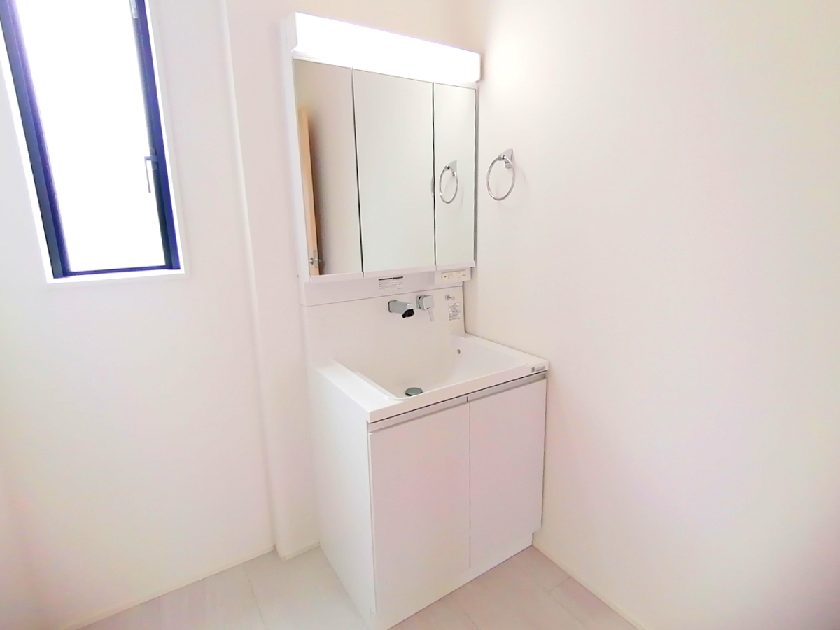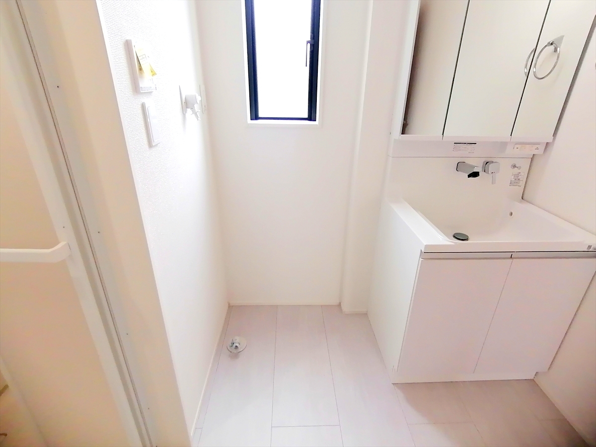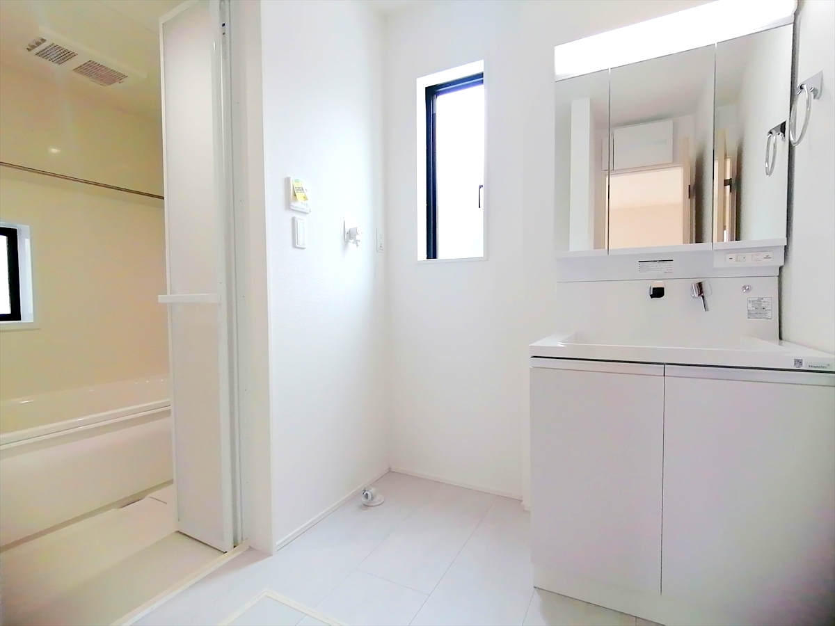 朝の身支度などには家族みんなが使う、ゆとりのある小窓もついた広々使える脱衣所です。 ■府中市小柳町4 新築一戸建て■