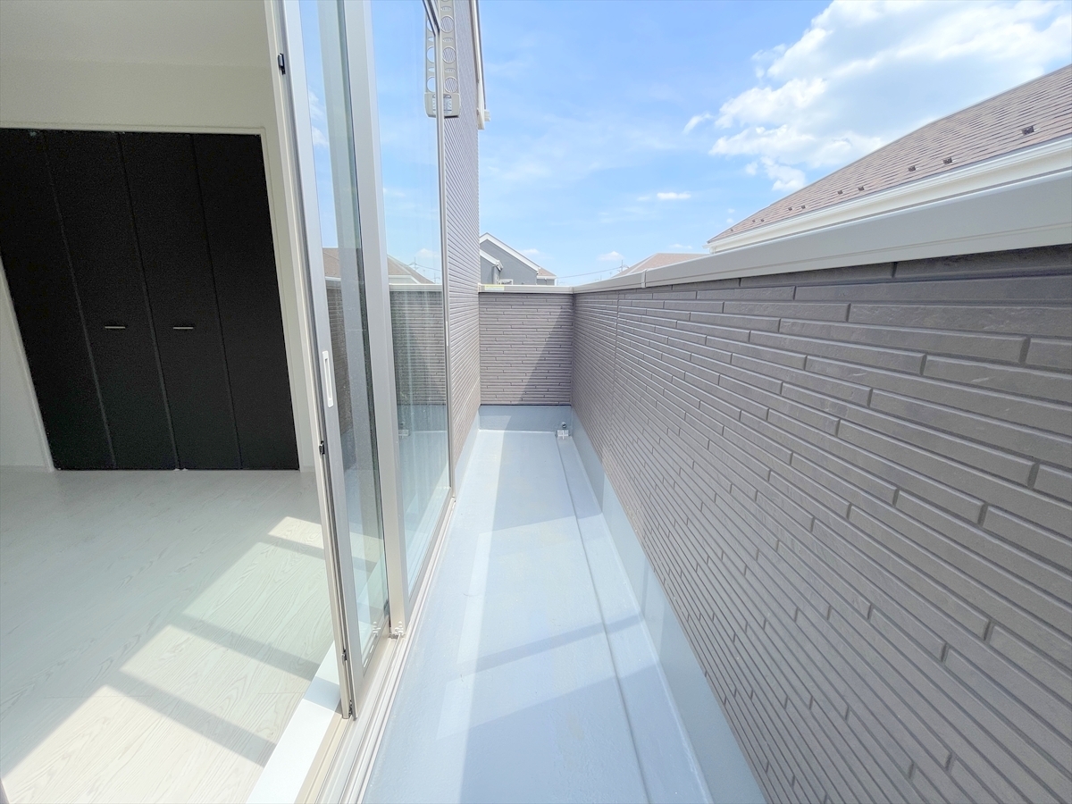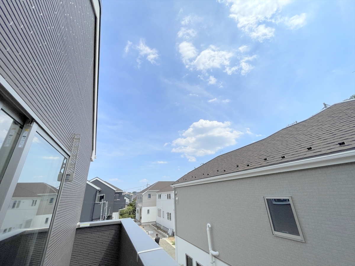 たっぷりの陽光と心地よい風が舞い込むバルコニー。たくさんのお洗濯物も一気に片付きます!■八王子市館町 新築一戸建て■