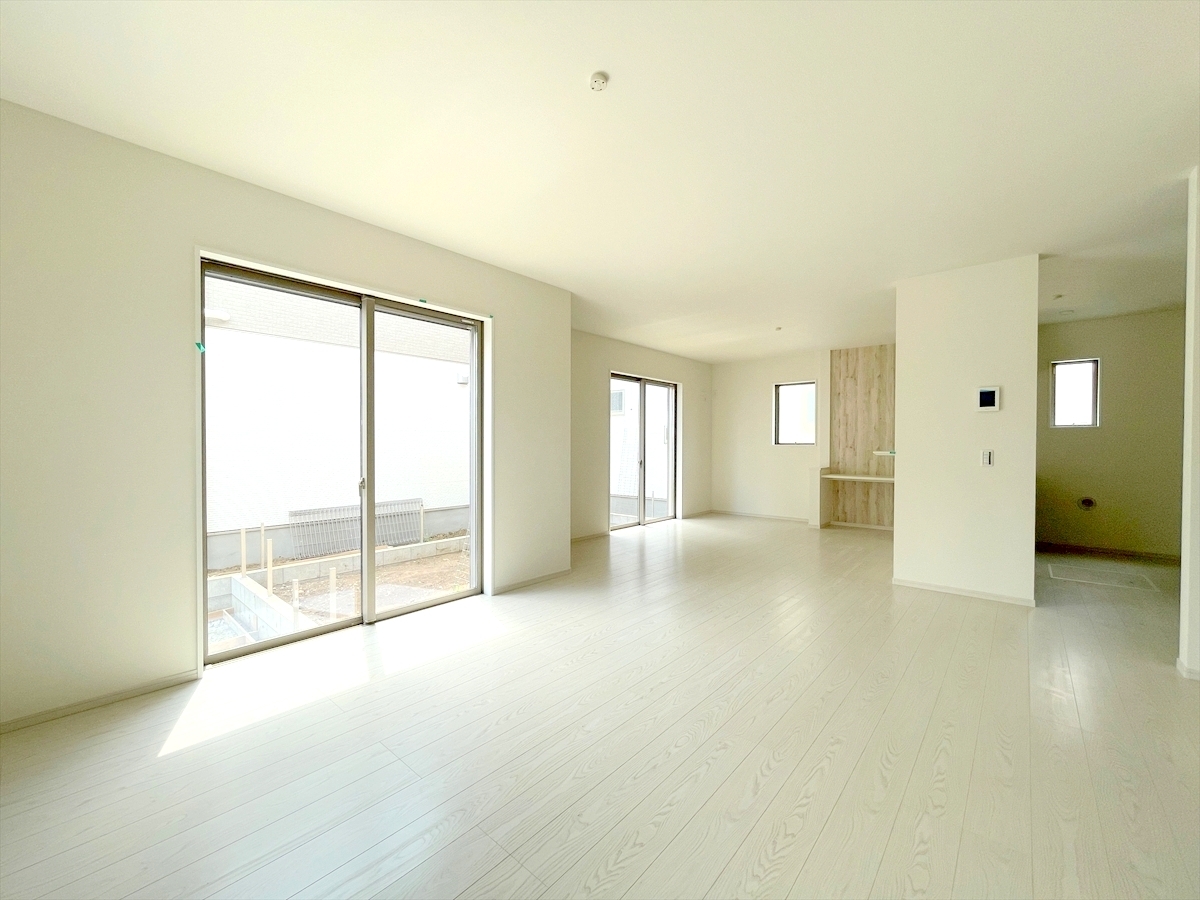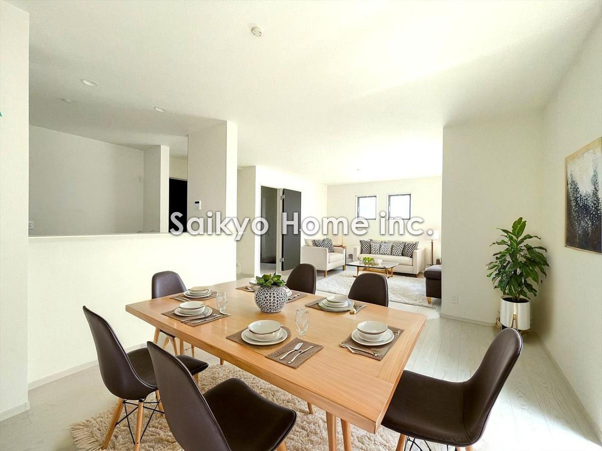 21帖超の大型LDKは家族と過ごす寛ぎ空間。大きな窓からたっぷりの陽光が降り注ぎます。 ※家具はCG加工しております。■八王子市館町 新築一戸建て■
