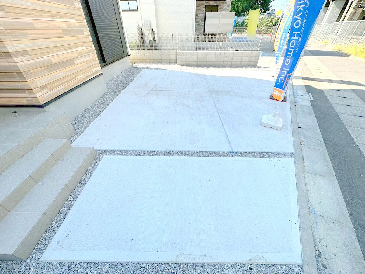 カースペースはコンクリート仕上げ。雨の日でも足元を気にすることなく駐車できます。 ■府中市分梅町2 新築一戸建て■