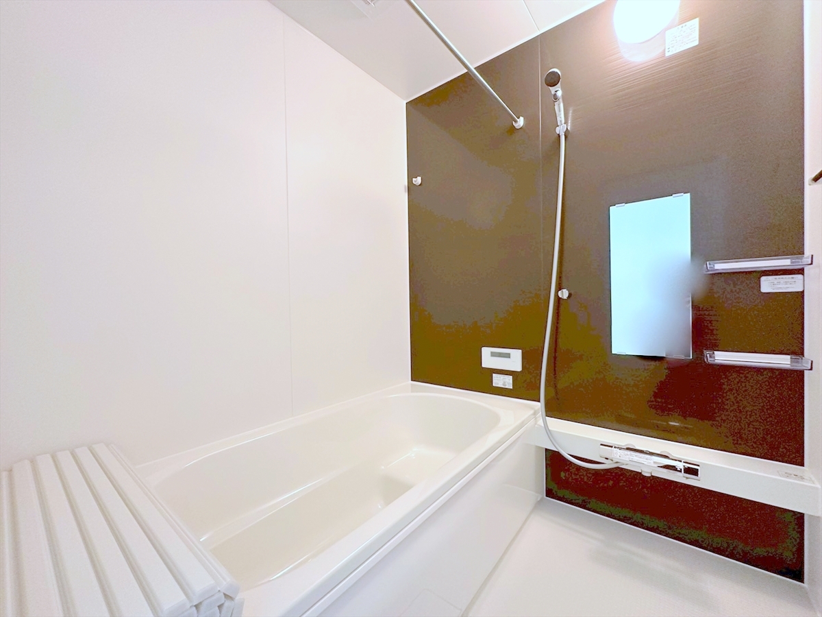 ゆったりと足を伸ばせる一坪タイプの浴室です。浴室換気乾燥機付きですので、カビの発生も抑制出来ます。 ■府中市分梅町2 新築一戸建て■
