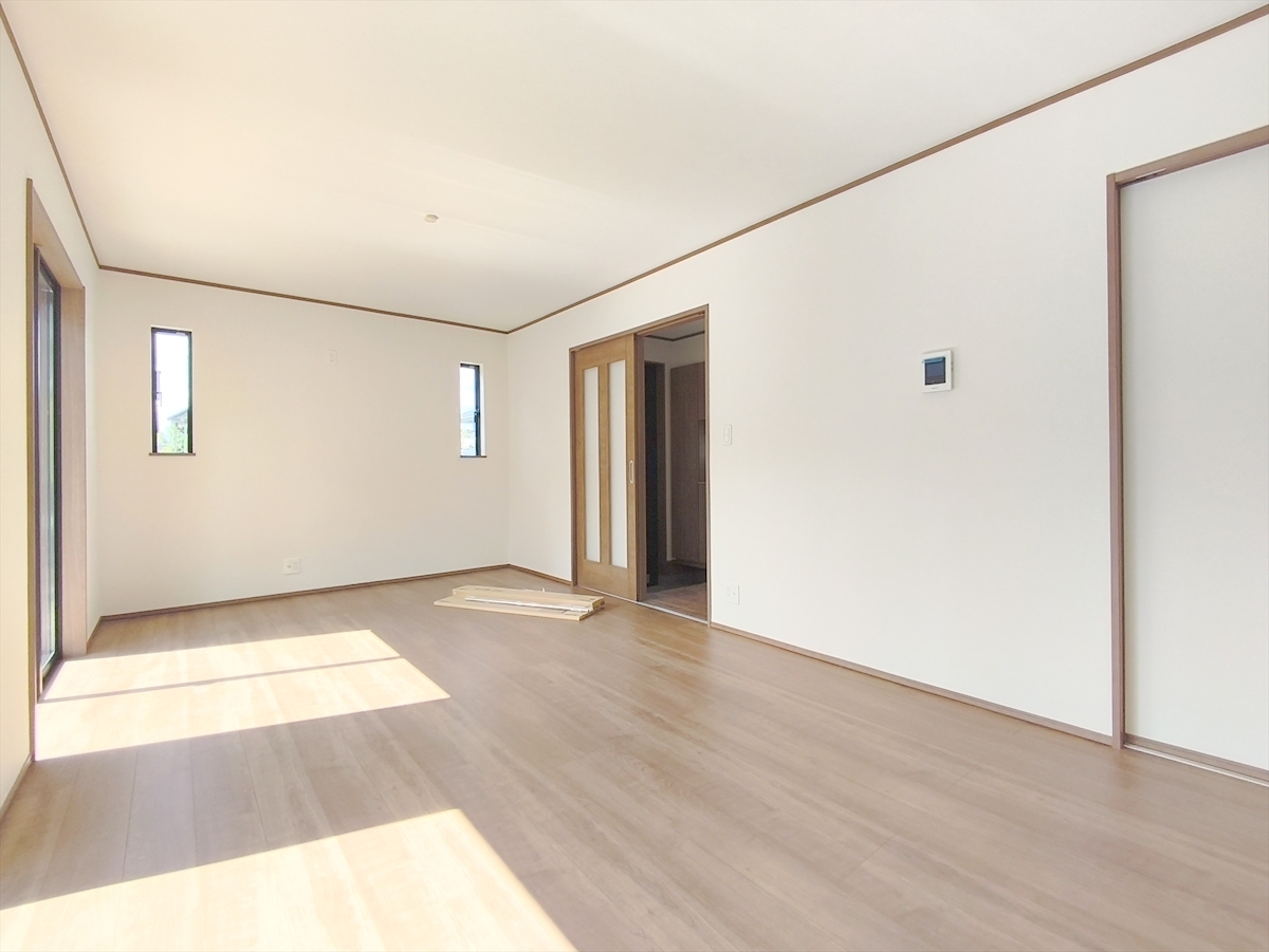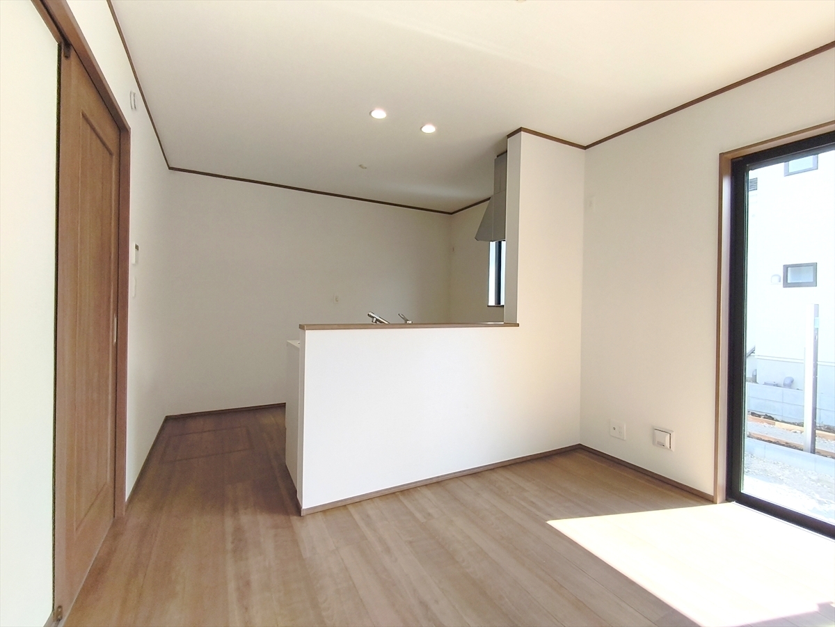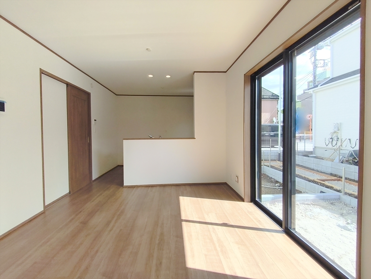 16帖超の広々LDK。南に面した窓からは暖かな陽光がたっぷり差し込みます。また通気性にも優れた設計です。 ■日野市平山5 新築一戸建て■
