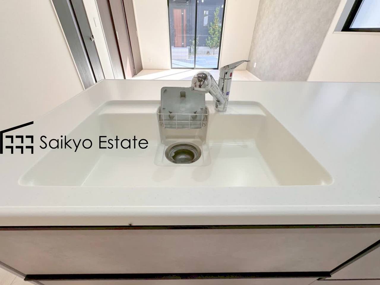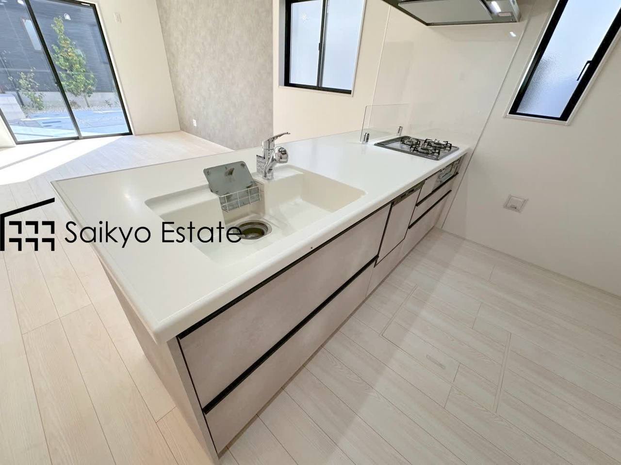 リビングにいる家族とコミュニケーションをとりながら作業が出来る人気のカウンターキッチン。お子様がリビングにいても目が届くので安心です。