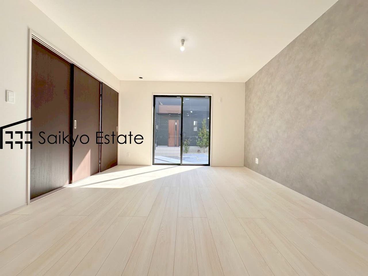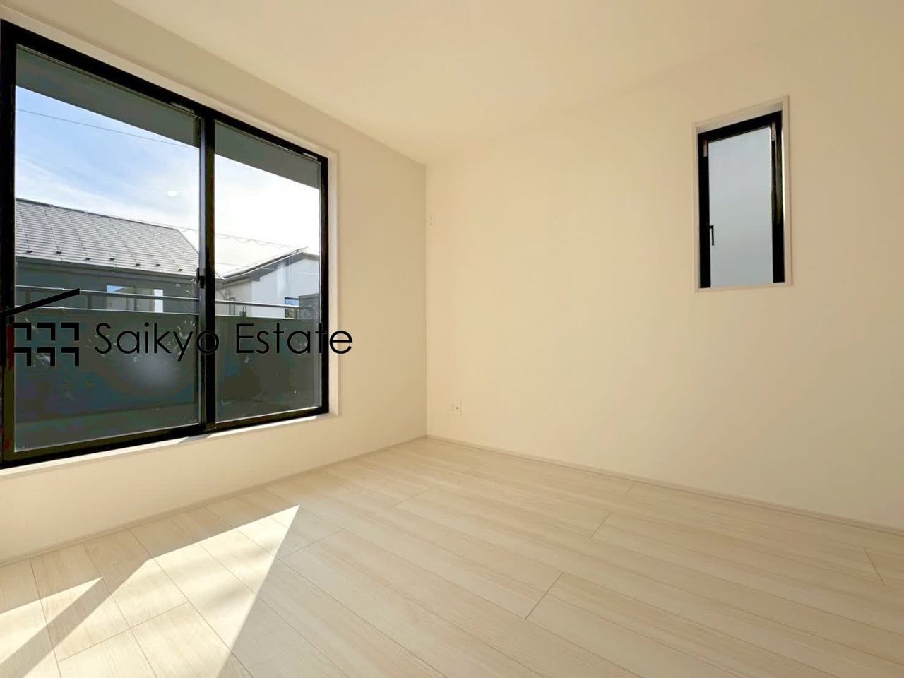 バルコニーに出入りの出来る洋室は、南側より陽光が差し込む明るい空間です。朝も気持ちよく起きられそうです♪