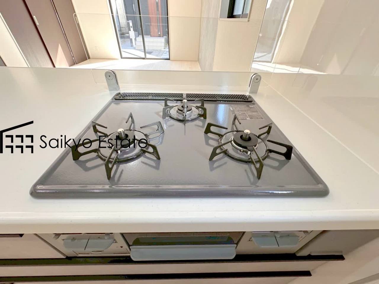 「3口ガスコンロシステム」はたくさんの料理が同時に作れて便利な上、凹凸が少ないフラットトップなのでお掃除も楽々です。
