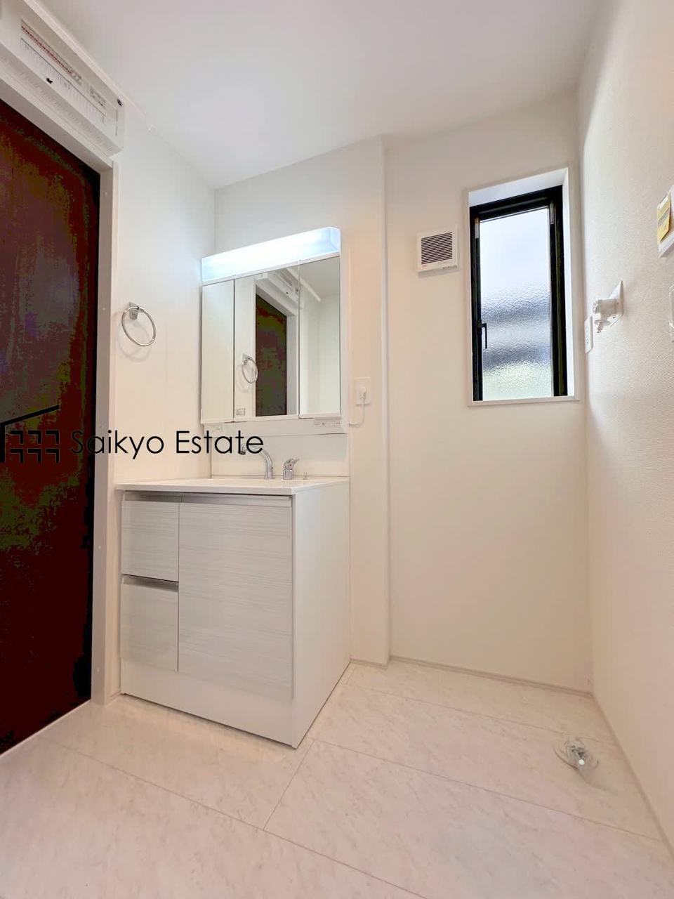 三面鏡付きの洗面化粧台を完備。収納スペースも十分ございますので、ドライヤーなどすっきりと片付きます♪