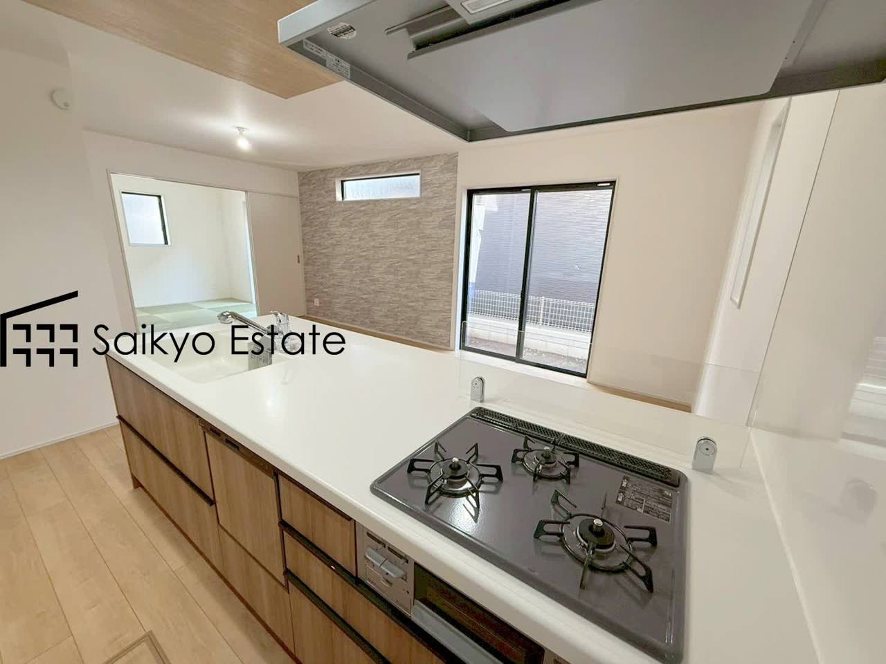 リビングにいる家族とコミュニケーションをとりながら作業が出来る人気のカウンターキッチン。お子様がリビングにいても目が届くので安心です。