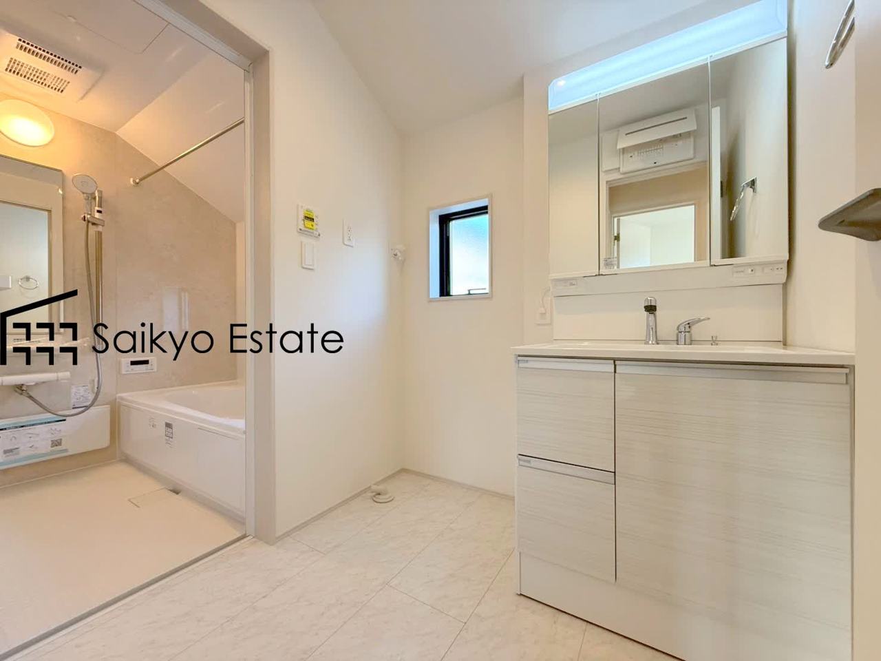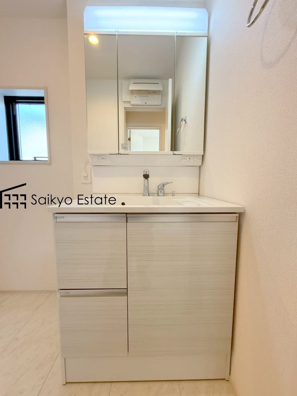 三面鏡付きの洗面化粧台を完備。収納スペースも十分ございますので、ドライヤーなどすっきりと片付きます♪