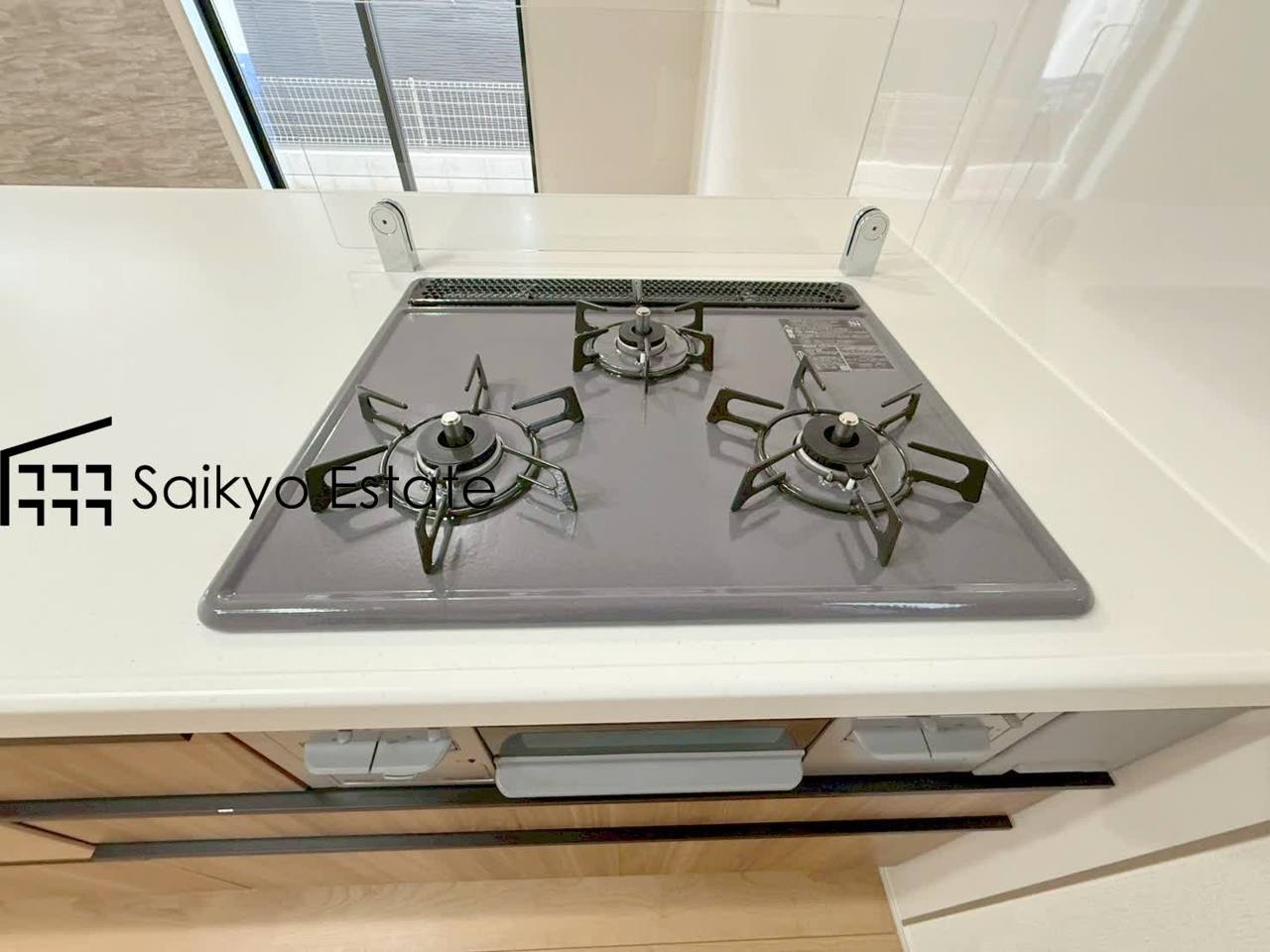 「3口ガスコンロシステム」はたくさんの料理が同時に作れて便利な上、凹凸が少ないフラットトップなのでお掃除も楽々です。
