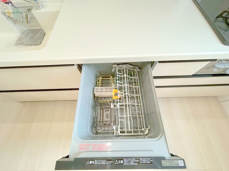 食洗機設置のシステムキッチン。人造大理石トップは、パン作りやお菓子作りの際もそのまま調理台として使用できます。お子様と一緒にホームメイドはいかがですか?■日野市新町2 新築一戸建て■