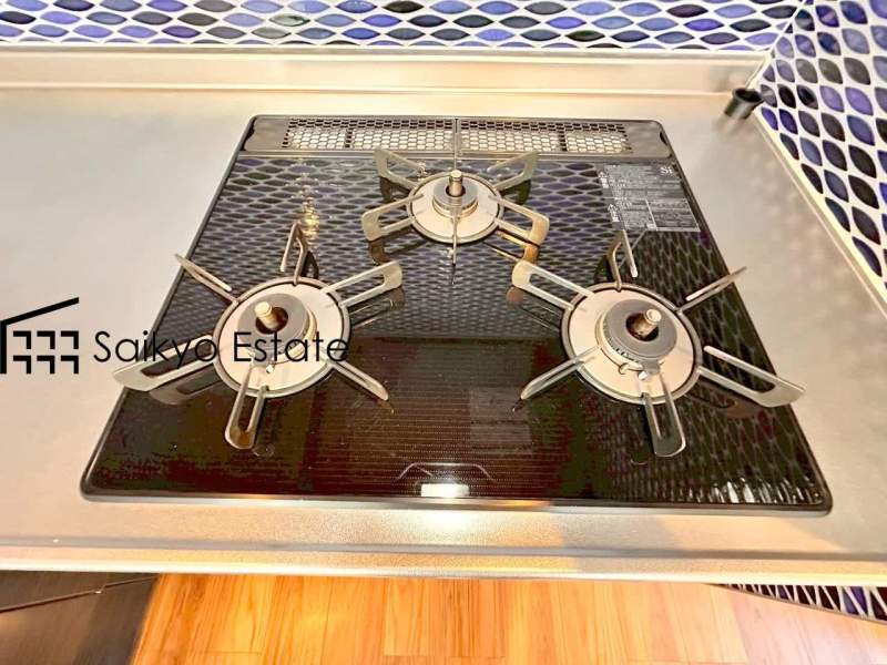 「3口ガスコンロシステム」はたくさんの料理が同時に作れて便利な上、凹凸が少ないフラットトップなのでお掃除も楽々です。