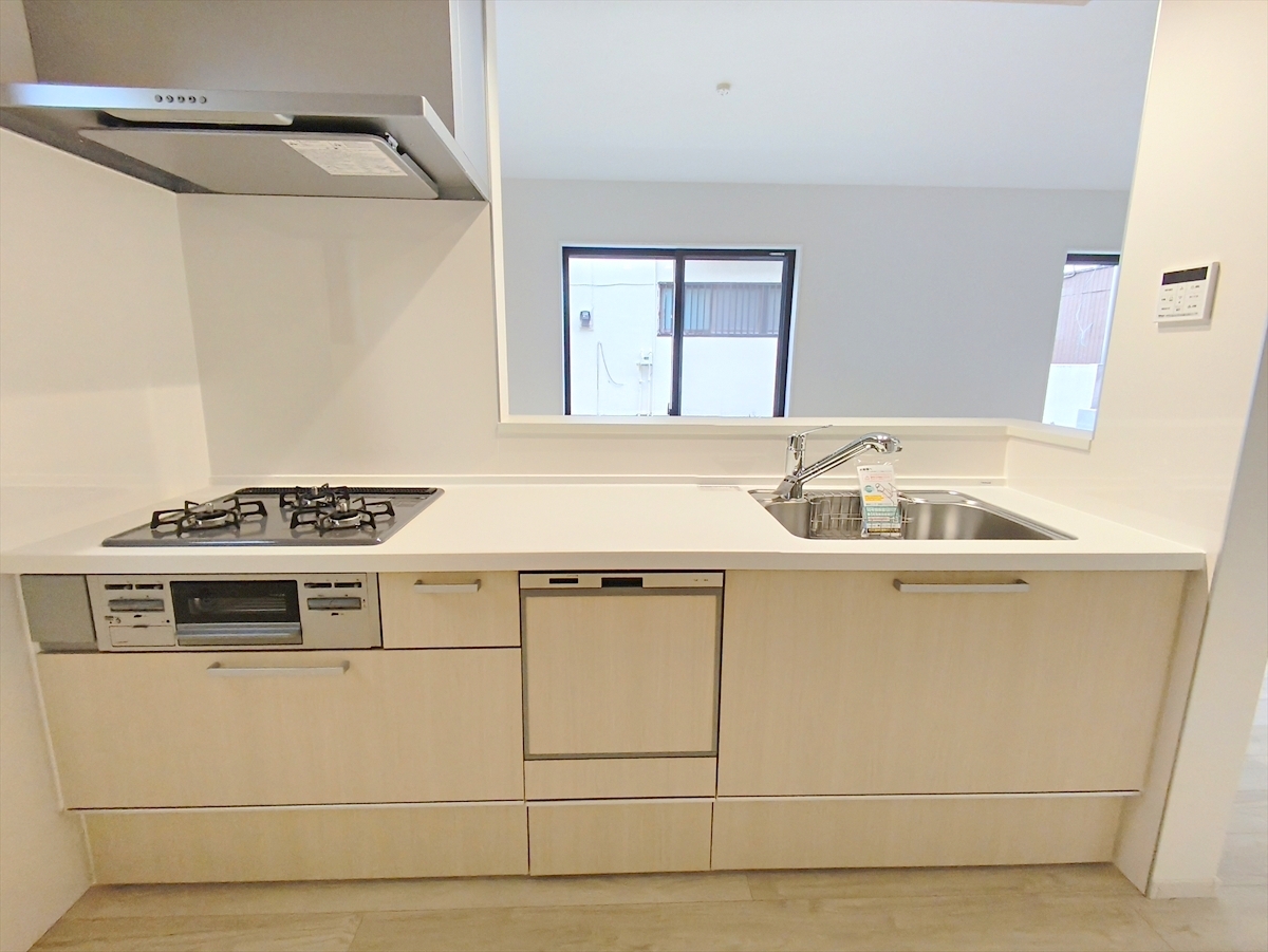 キッチンからリビング全体を見渡せるので、小さなお子様がいらしても様子を見ながら家事ができますね。もちろん食洗機もついています。 ■府中市浅間町4 新築一戸建て■
