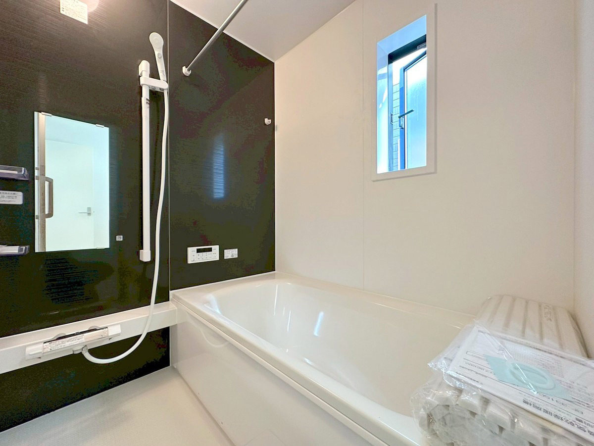 ゆったりと足を伸ばせる一坪タイプの浴室です。浴室換気乾燥機付きですので、カビの発生も抑制出来ます。 ■調布市深大寺東町1 新築一戸建て■