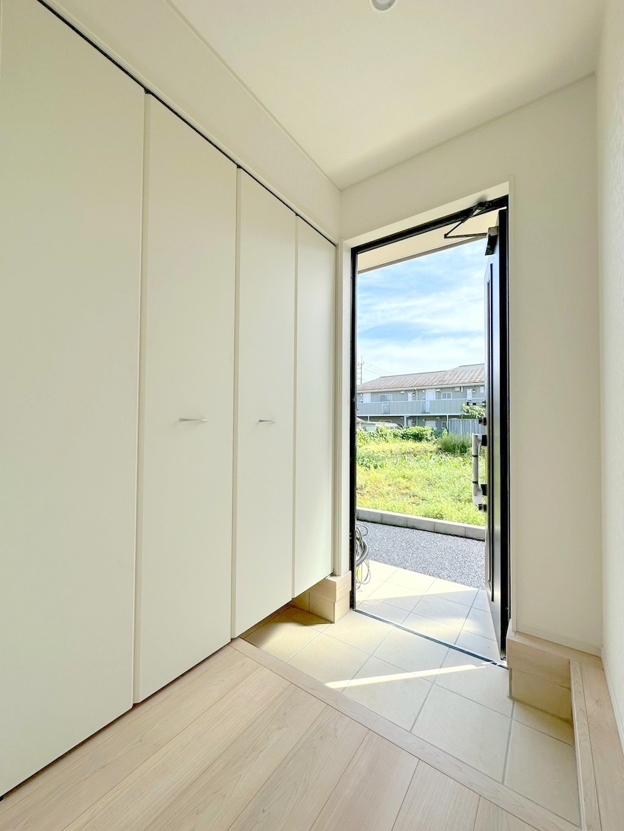 玄関は清潔感のある空間にしたいもの。ご家族が多いご家庭にはとても便利なたっぷり収納できるシューズボックス付きです。 ■調布市深大寺東町1 新築一戸建て■