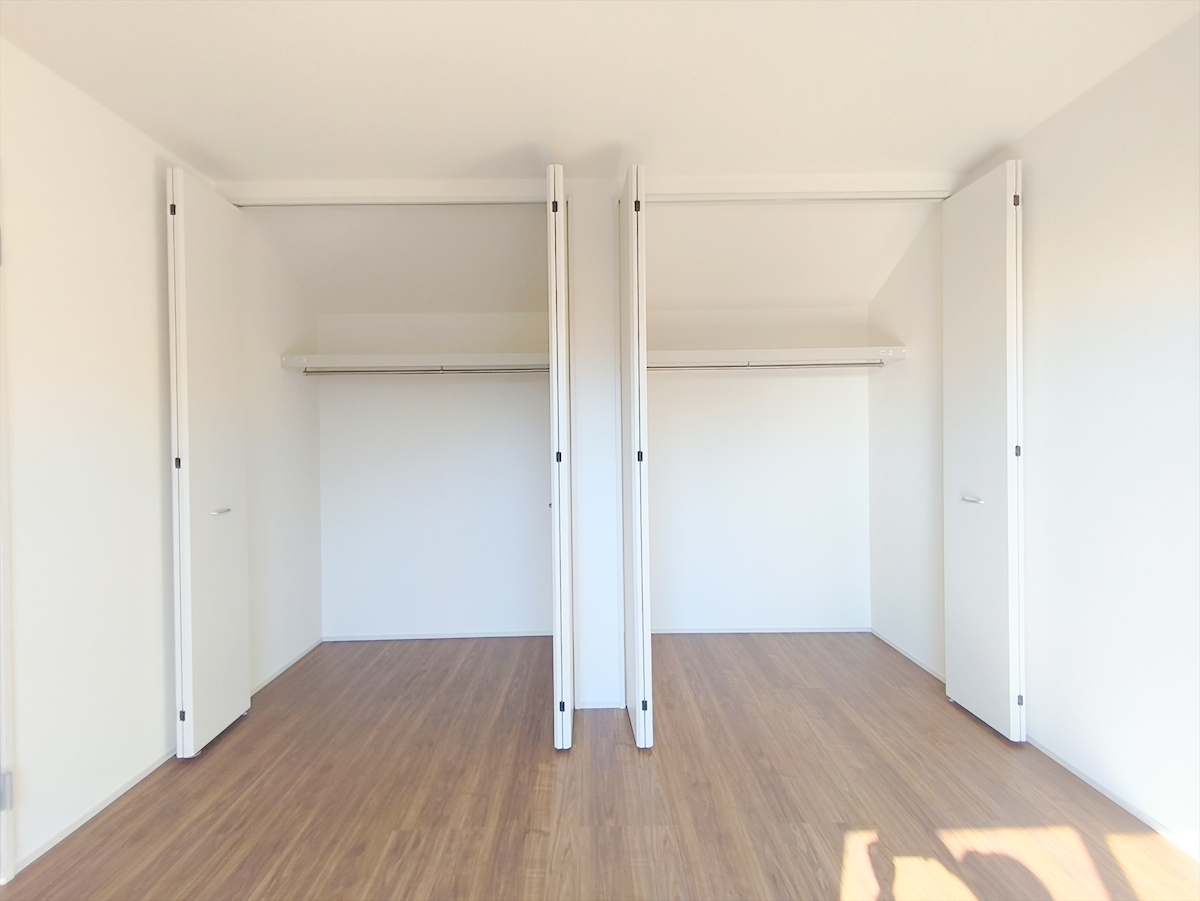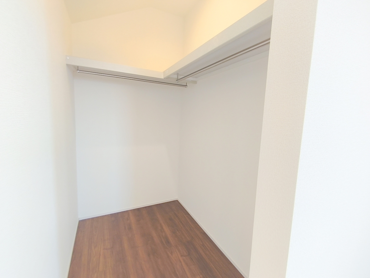 ひと目で収納物を確認できるウォークインクローゼットは、ゆとりの広さを備えた大型収納。数多くの衣類に加え、足元には引出しや衣装箱、シューズボックスなども収納することができます。■日野市旭が丘5 新築一戸建て■