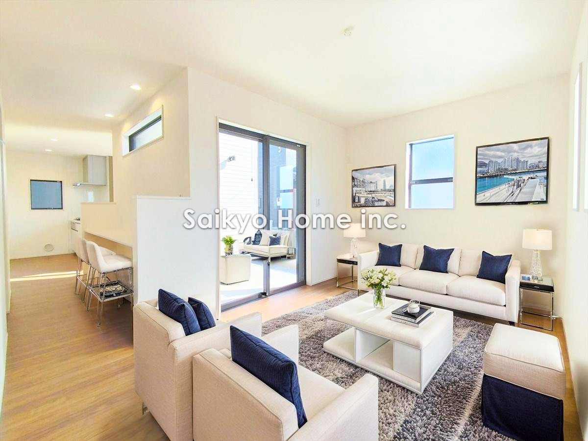 陽光をしっかり取り入れた、明るく広々としたリビング空間。家族団欒の場に最適です。※家具等はCG加工しております。■日野市旭が丘5 新築一戸建て■