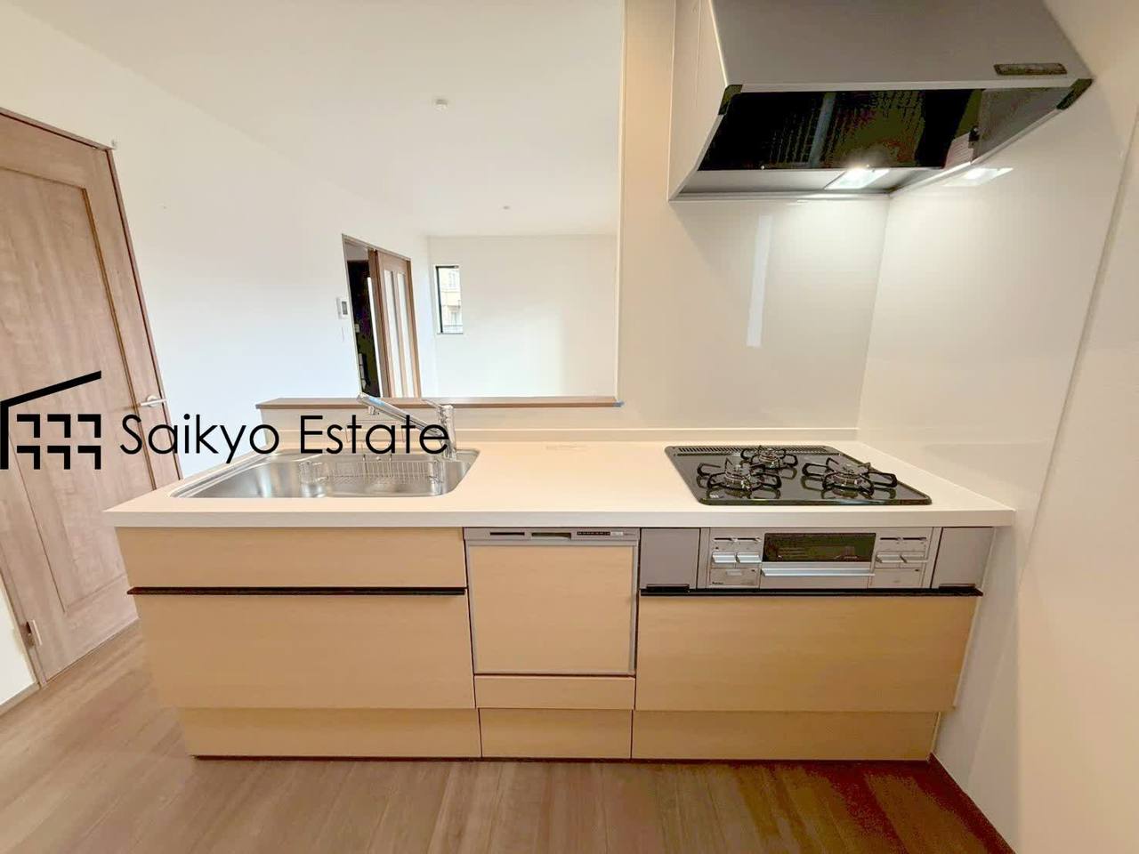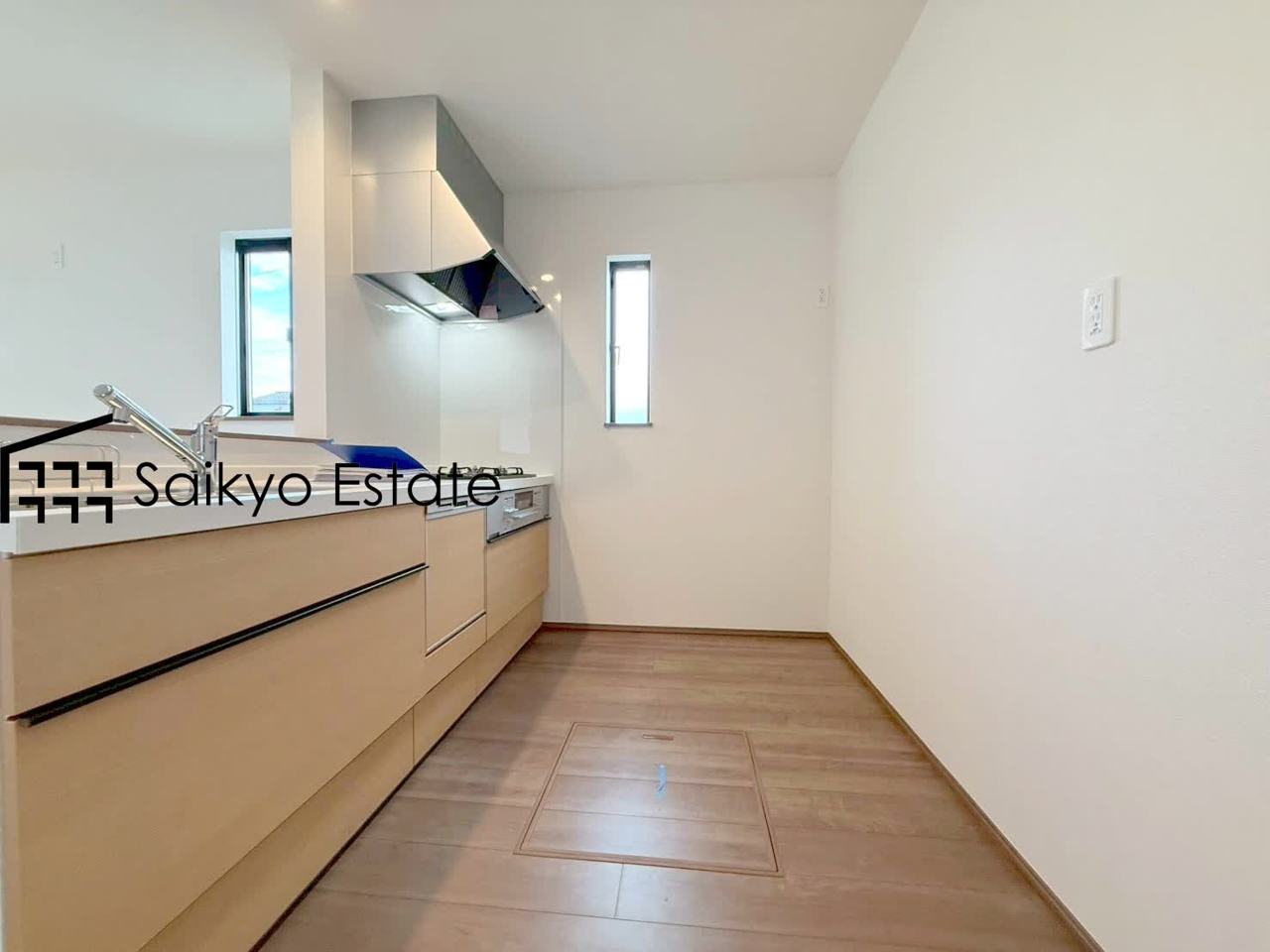リビングにいる家族とコミュニケーションがとりやすい、人気のカウンターキッチンを採用。小さなお子さんがリビングにいても目が届くので安心です。食洗機付きです。