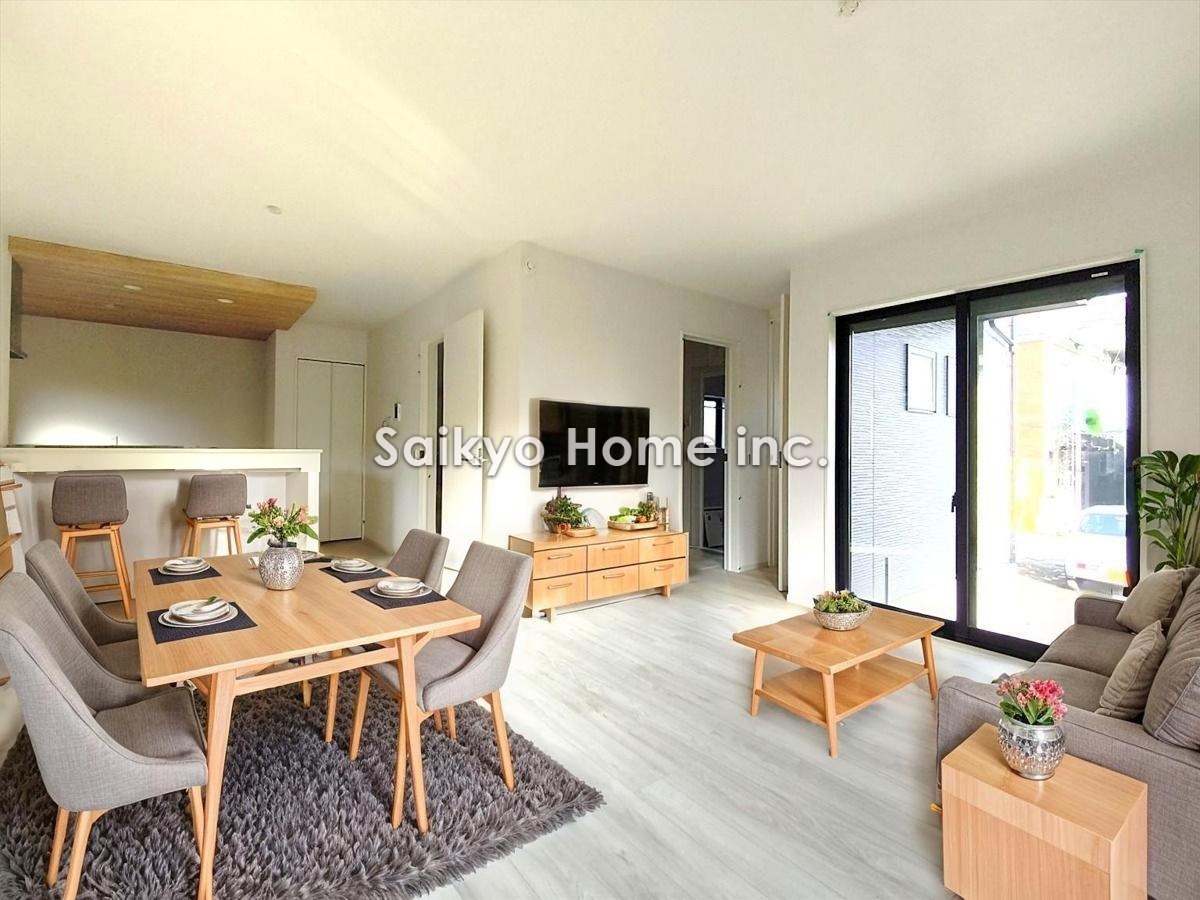 お陽さまの光、爽やかな風をたっぷり取り込めます。室内はいつも明るい印象なので気持ちの良い朝を迎えられます。毎日の生活も明るくなりそう ※家具はCG加工しております。■八王子市子安町1 新築一戸建て■