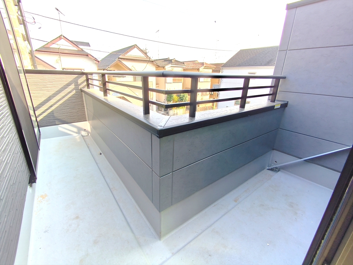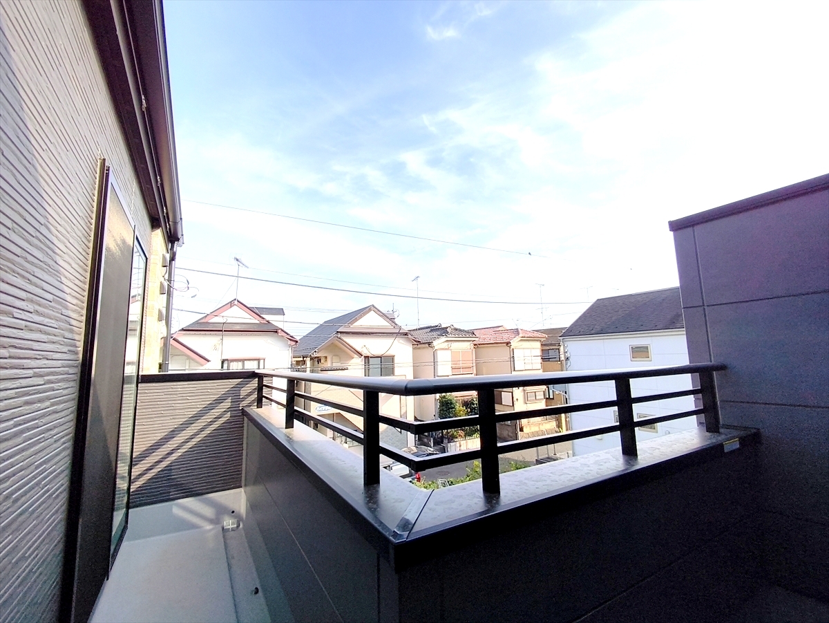 広々スペースのL字型バルコニー。たくさんのお洗濯物もお布団も一緒に干すことができます。■八王子市子安町1 新築一戸建て■