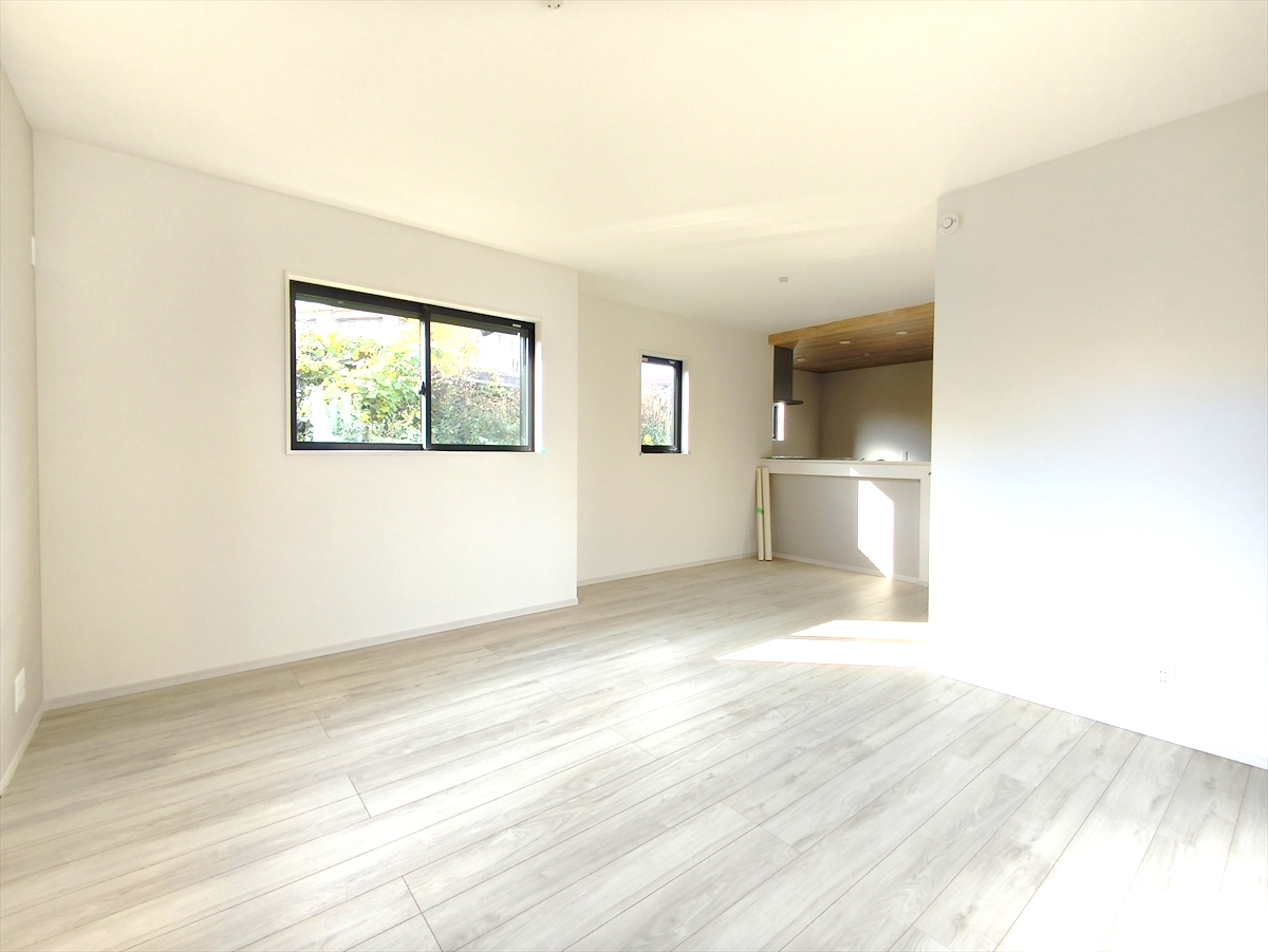 キッチンからリビング全体を見渡せるので、小さなお子様がいらしても様子を見ながら家事ができますね■八王子市子安町1 新築一戸建て■