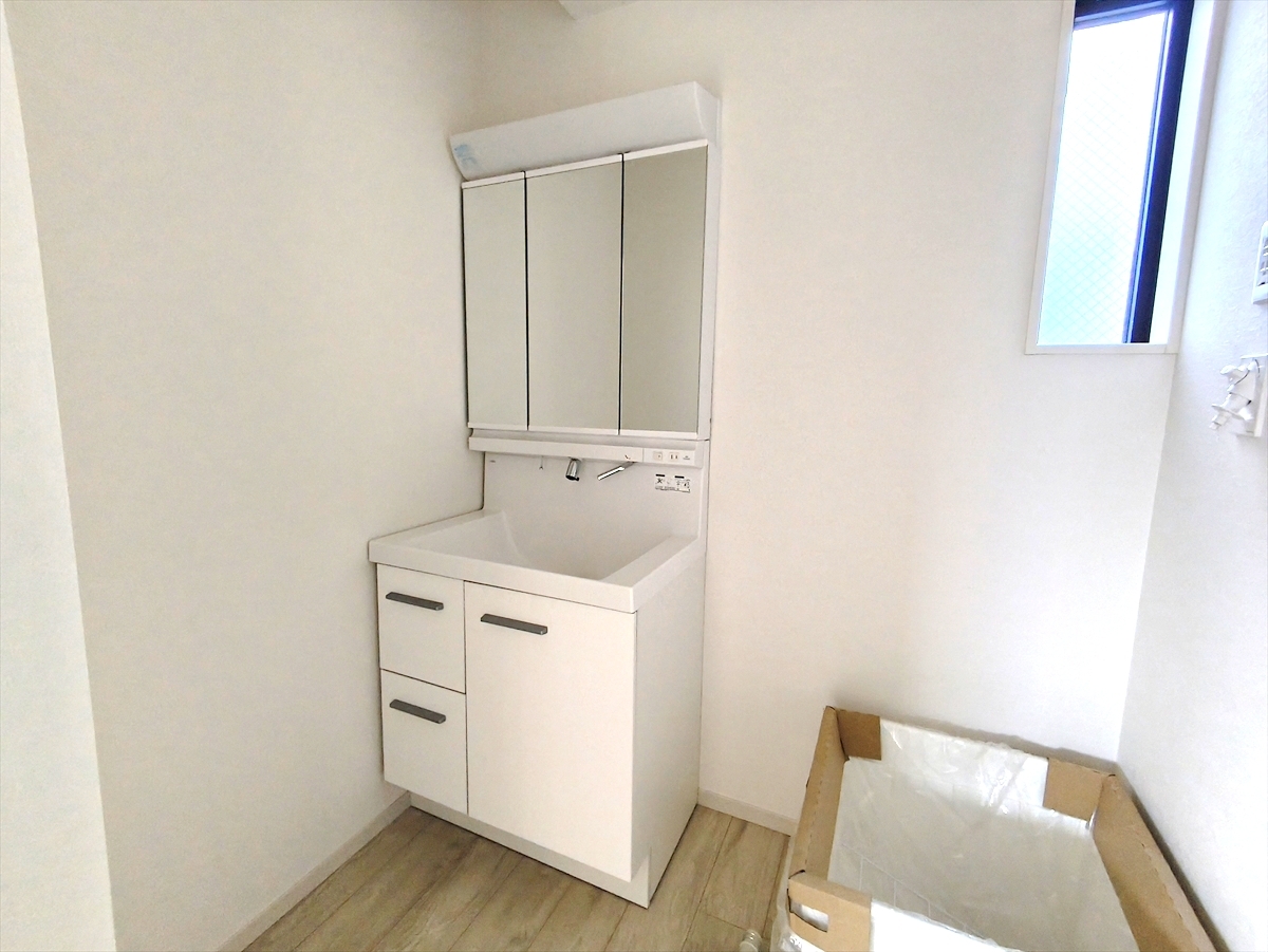シンプルかつ機能性も追求した使い勝手の良い洗面台。広めで使いやすくお手入れもカンタン。いつでもすっきり清潔に保てます。■八王子市子安町1 新築一戸建て■