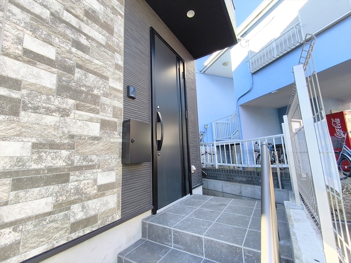 清潔感あふれるエントランスと高級感ある玄関扉が出迎えます。思わず「ただいま」と言いたくなるそんな玄関先です。■八王子市子安町1 新築一戸建て■
