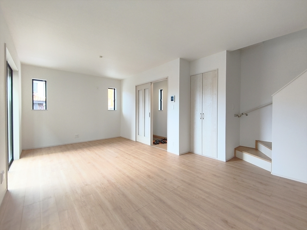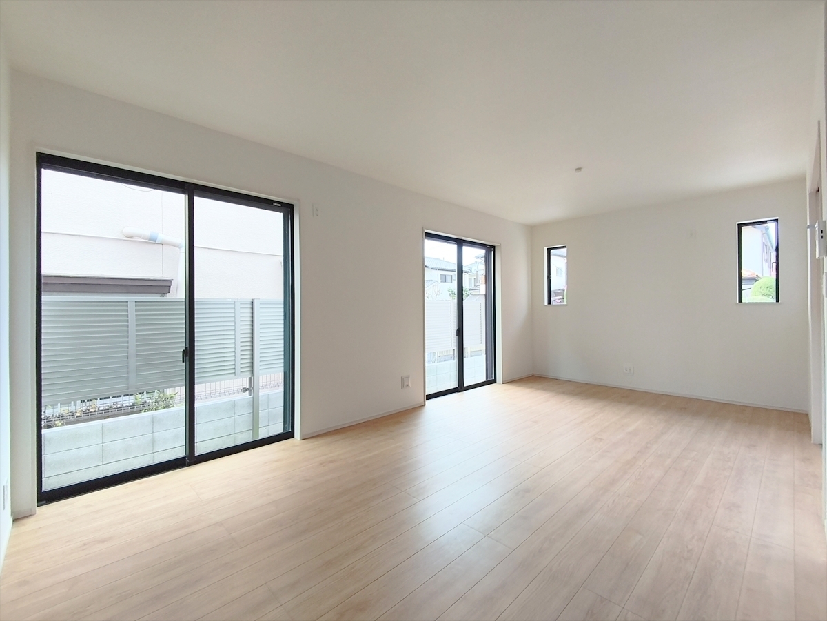陽光をしっかり取り入れた、明るく広々としたリビング空間。家族団欒の場に最適です。 ■立川市幸町4 新築一戸建■