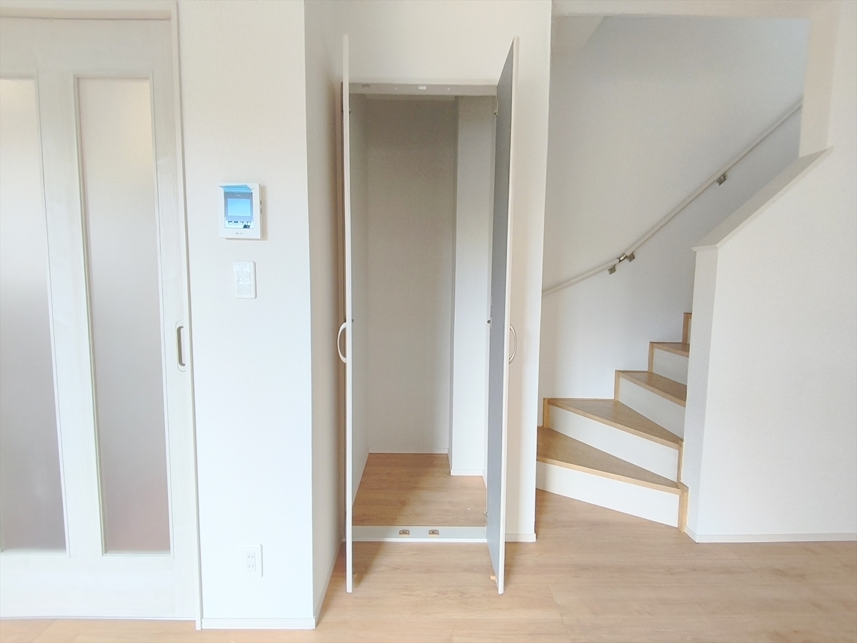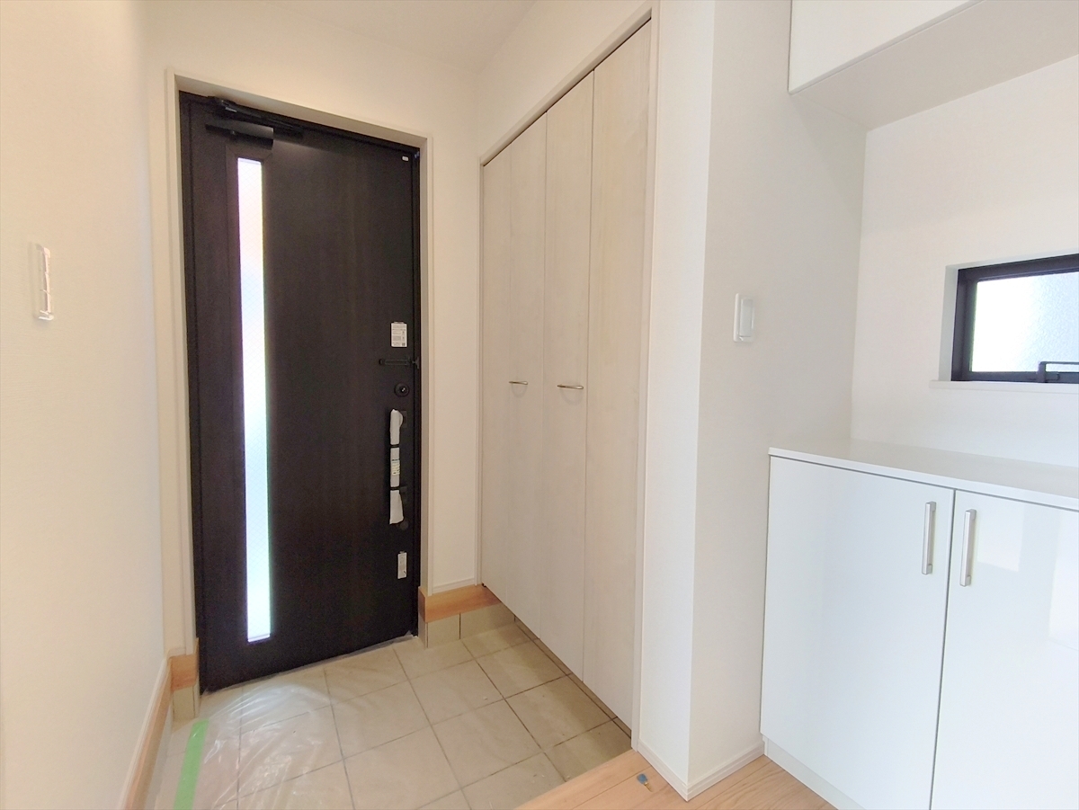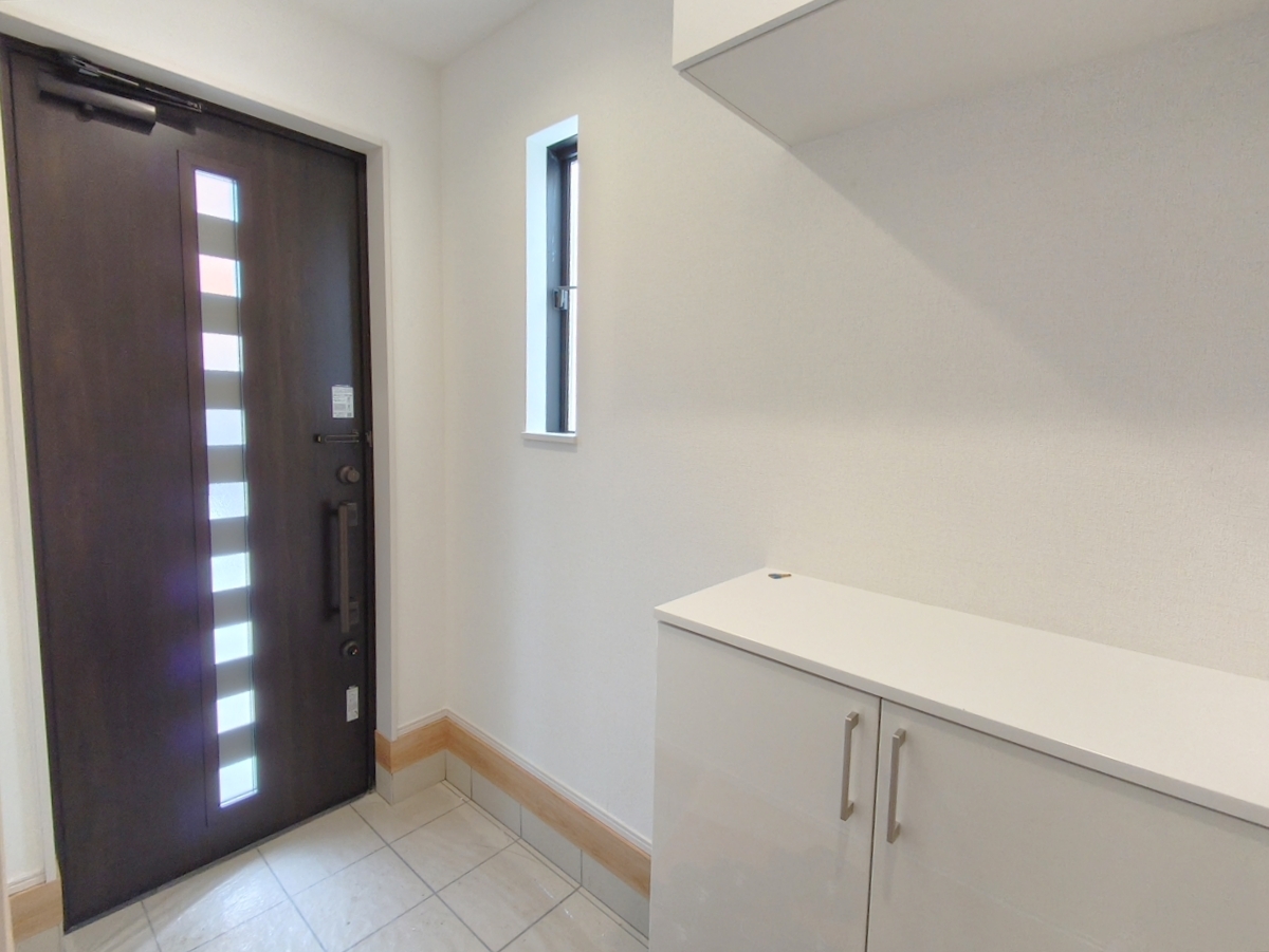 玄関は清潔感のある空間にしたいもの。ご家族が多いご家庭にはとても便利なたっぷり収納できるシューズボックス付きです。■立川市幸町4 新築一戸建■