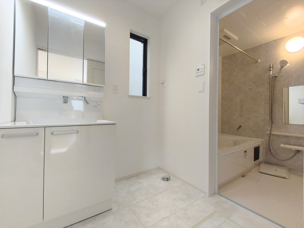一日の疲れを癒しながら、お子様と一緒にバスタイムも楽しめる清潔感あふれる浴室です。浴室は換気・乾燥・暖房機能付きなので、雨の日のお洗濯や寒い冬でも1年中快適です。 ■立川市幸町4 新築一戸建■