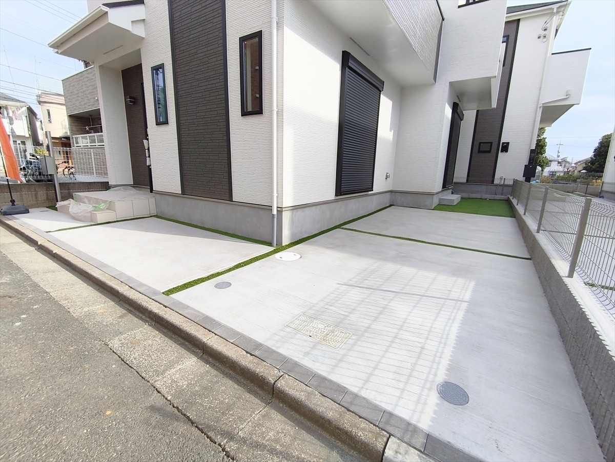 カースペースはコンクリート仕上げ。雨の日でも足元を気にすることなく駐車できます。 ■立川市幸町4 新築一戸建■