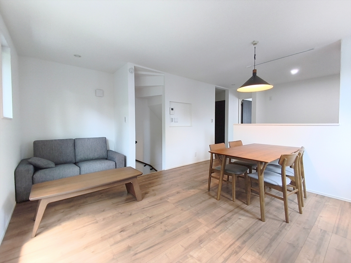 家族が自然と集まる明るく開放的なリビング。南向きで陽当たり良好。■国立市西2 新築一戸建て■