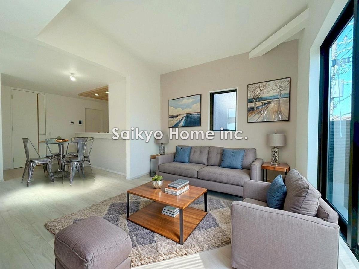 のびやかに広がるリビングは、一年を通して爽やかな光と風に癒される家族のなごみ空間です。※家具等はCG加工しております。 ■八王子市子安町3 新築一戸建■