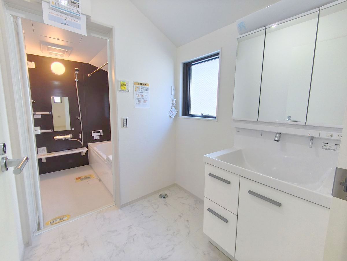 一日の疲れを癒しながら、お子様と一緒にバスタイムも楽しめる清潔感あふれる浴室です。浴室は換気・乾燥・暖房機能付きなので、雨の日のお洗濯や寒い冬でも1年中快適です。 ■八王子市子安町3 新築一戸建■