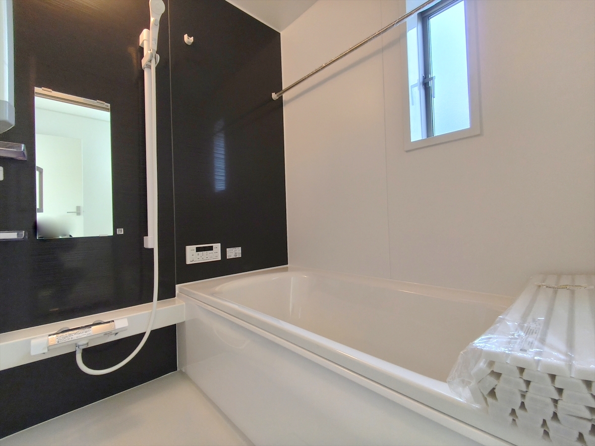 ゆったりと足を伸ばせる一坪タイプの浴室です。浴室換気乾燥機付きですので、カビの発生も抑制出来ます。 ■三鷹市大沢5 新築一戸建て■