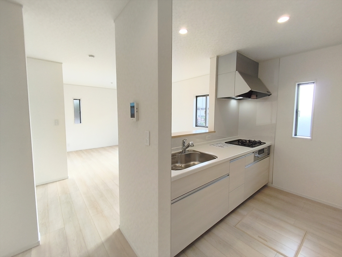 POINT1. 人気のカウンターキッチンなのでリビングの様子も見守れます!