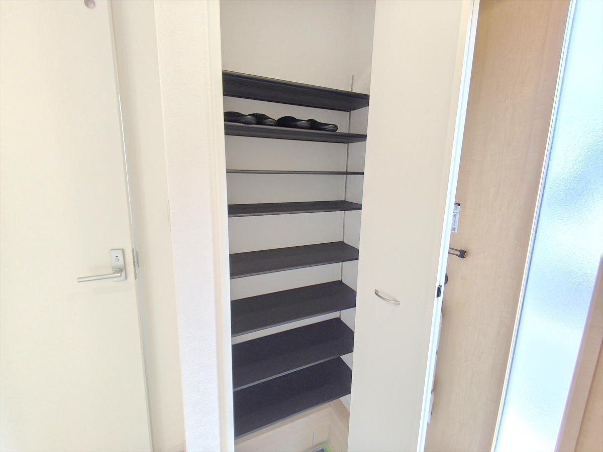 玄関は清潔感のある空間にしたいもの。ご家族が多いご家庭にはとても便利なたっぷり収納できるシューズボックス付きです。 ■三鷹市大沢5 新築一戸建て■