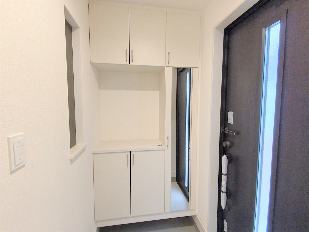 玄関は清潔感のある空間にしたいもの。ご家族が多いご家庭にはとても便利なたっぷり収納できるシューズボックス付きです。 ■府中市四谷4 新築一戸建て■