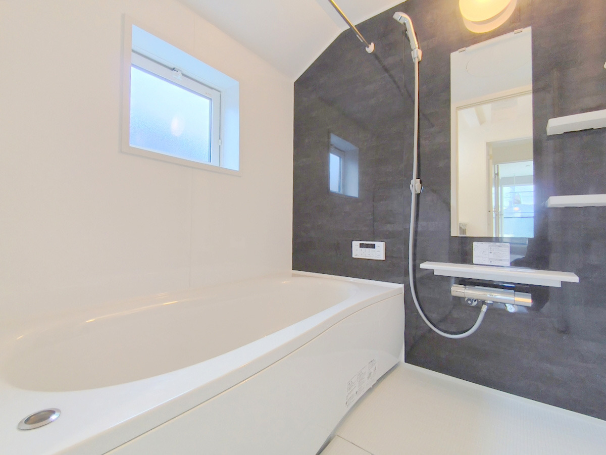 一日の疲れを癒すための心地よい浴室はゆとりあるサイズを採用。浴室乾燥機付き!汚れにくくお手入れしやすい浴室です。■府中市四谷4 新築一戸建て■