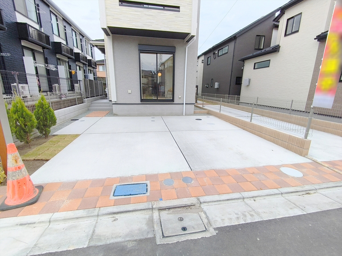 カースペースはコンクリート仕上げ。雨の日でも足元を気にすることなく駐車できます。 ■府中市四谷4 新築一戸建て■