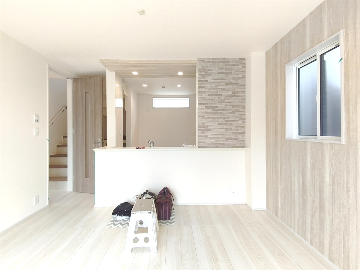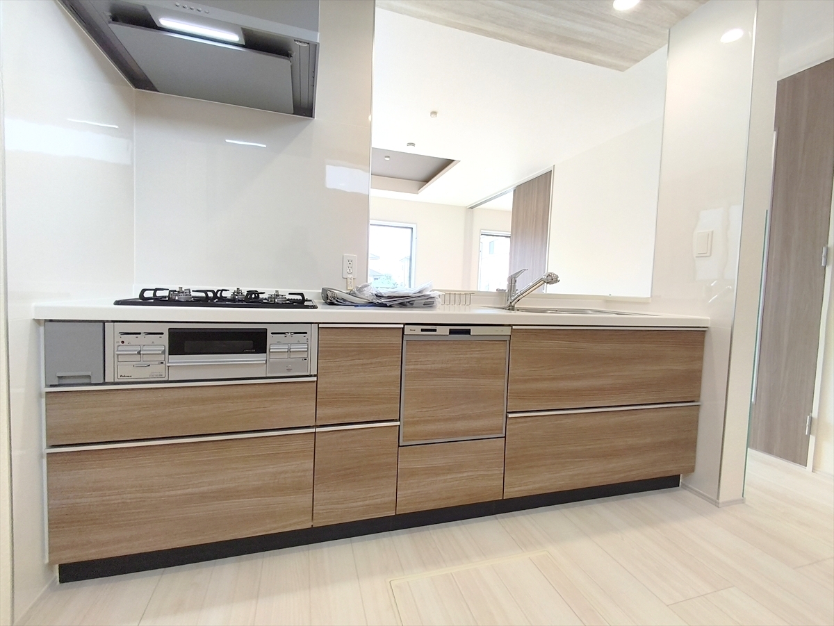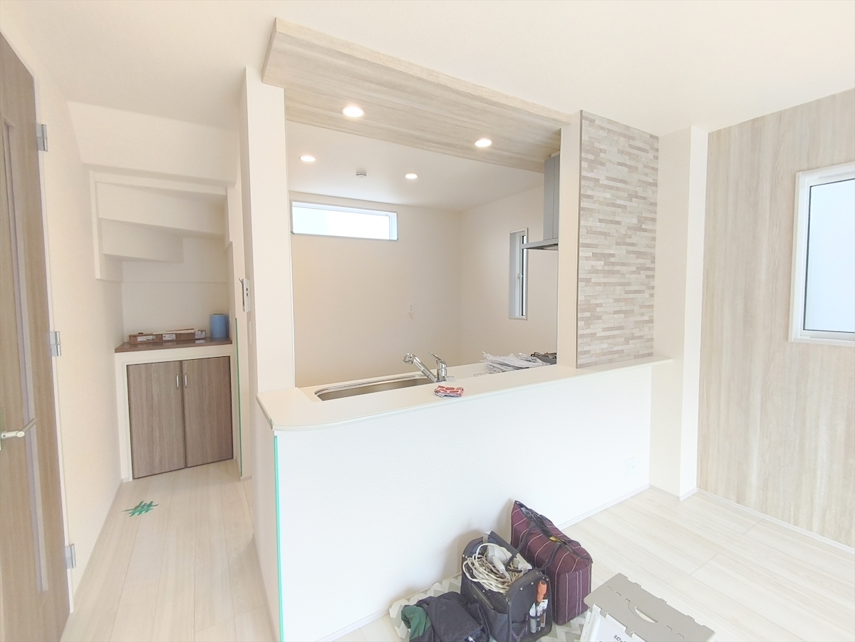 キッチンからリビング全体を見渡せるので、小さなお子様がいらしても様子を見ながら家事ができますね■府中市四谷4 新築一戸建て■