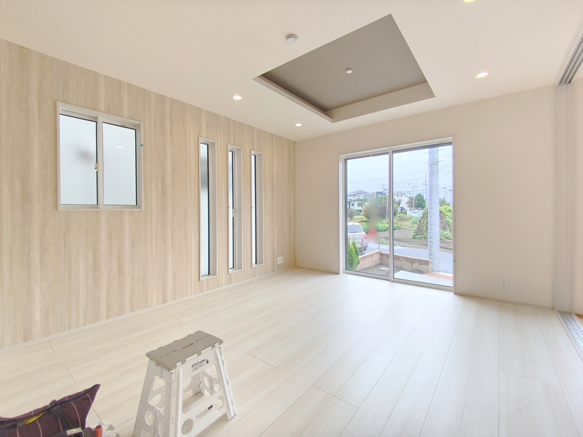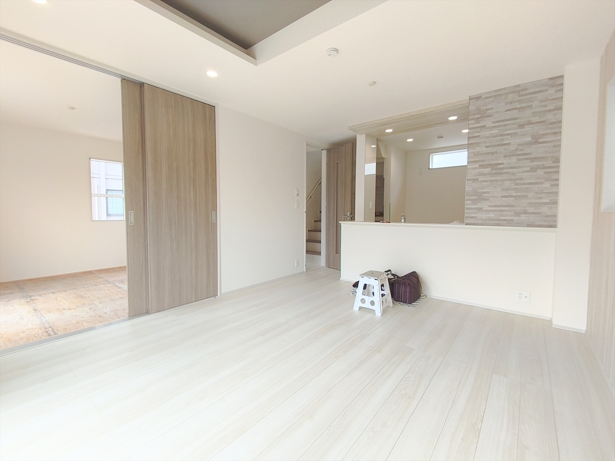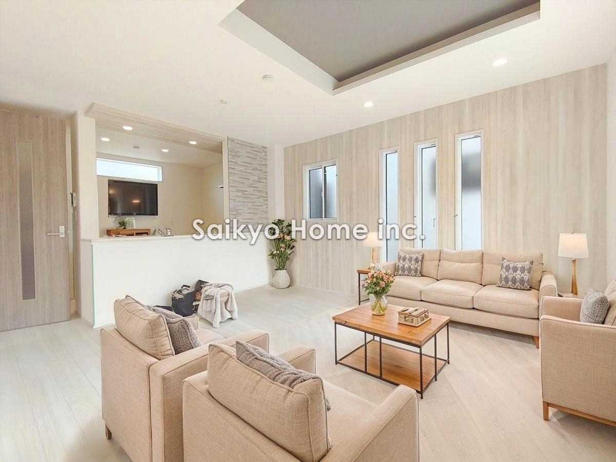 アクセントクロスがおしゃれなLDKでくつろぎの時間をお過ごしください。※家具等はCG加工しております。■府中市四谷4 新築一戸建て■