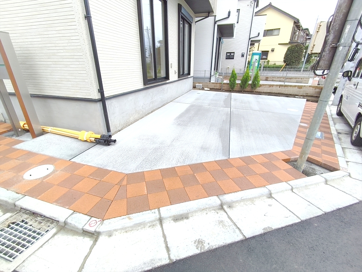 カースペースはコンクリート仕上げ。雨の日も足元は気になりません!■府中市四谷4 新築一戸建て■