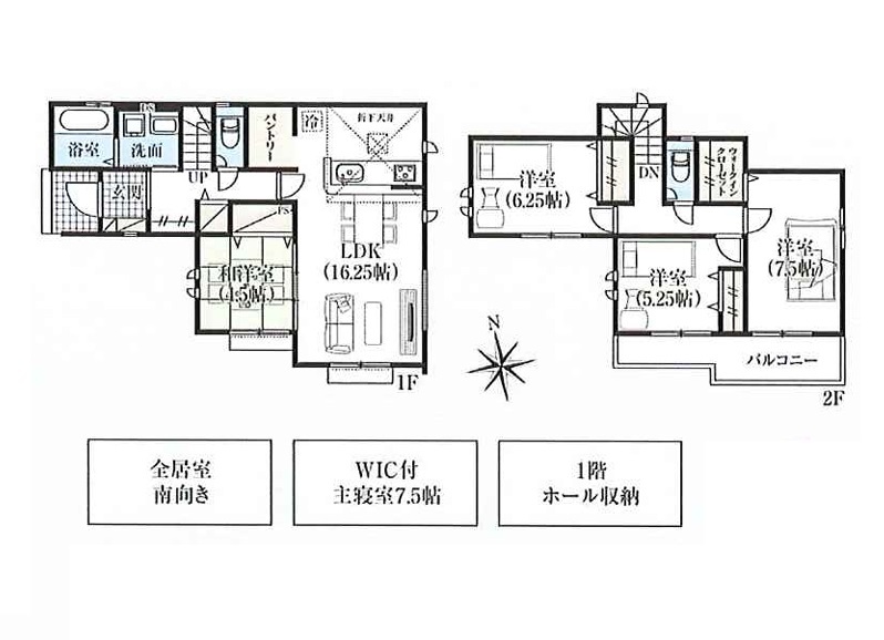 | 間取 | 4LDK (LDK16.25帖、和室4.5帖、洋室7.5帖、洋室6.25帖、洋室5.25帖) | ||