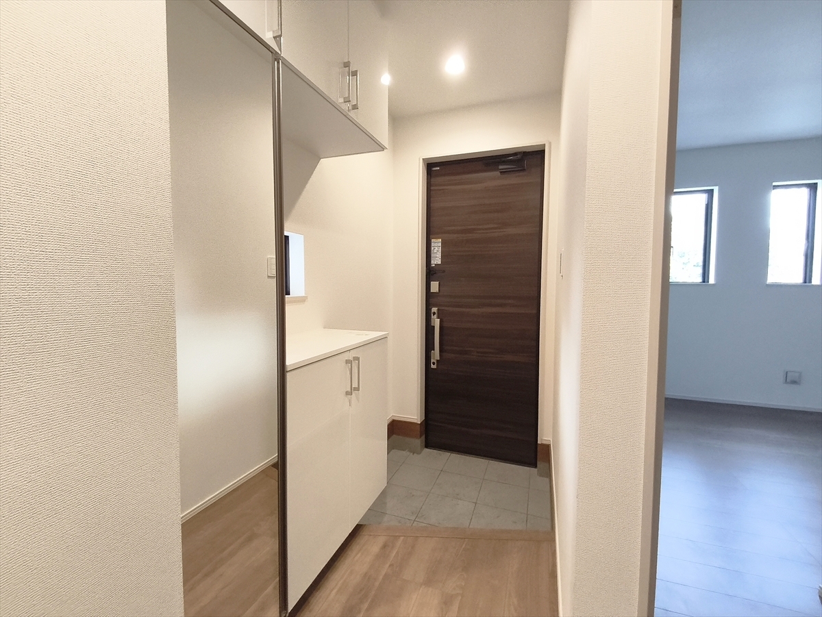 玄関は清潔感のある空間にしたいもの。ご家族が多いご家庭にはとても便利なたっぷり収納できるシューズボックス付きです。 ■昭島市朝日町3 新築一戸建て■