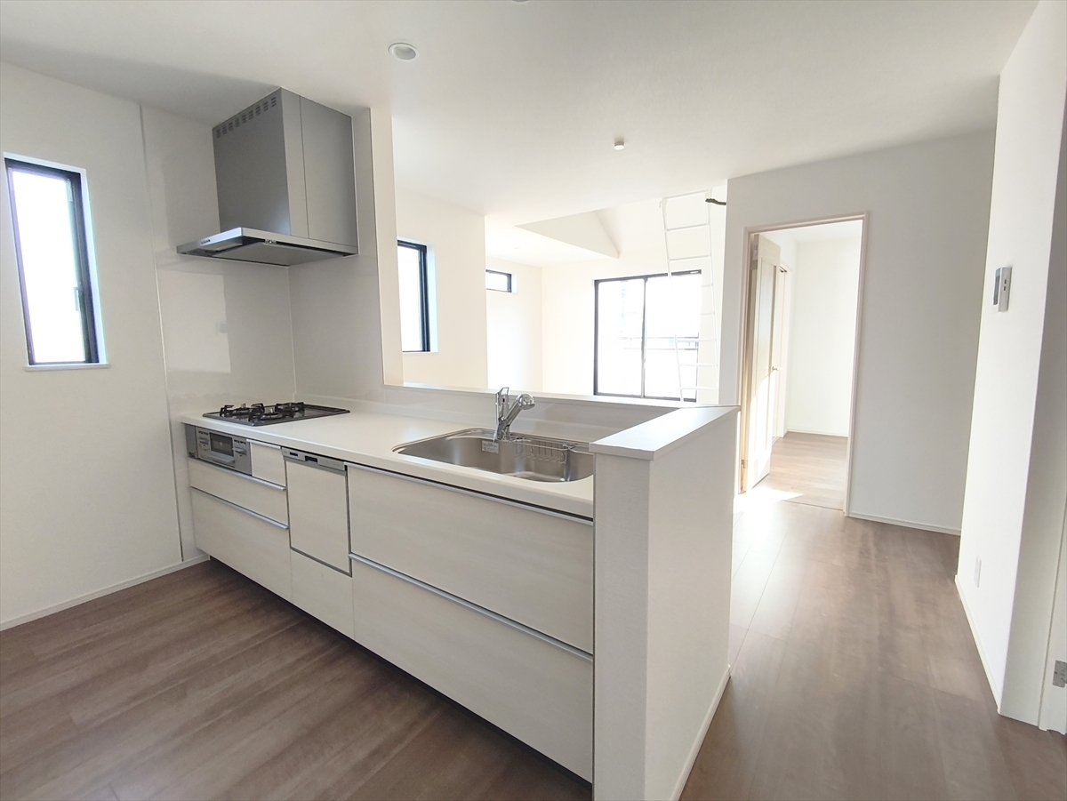 対面キッチなのでリビングにいる家族の様子がうかがえるので小さなお子様がいても安心ですね。 ■昭島市朝日町3 新築一戸建て■