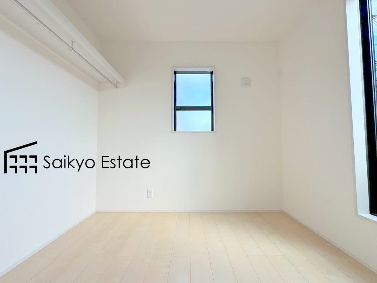 白を基調とした洋室は清潔感があり、落ち着いた空間です。木の温もりが優しいフローリングで、北欧風インテリアが似合いそうな空間です。